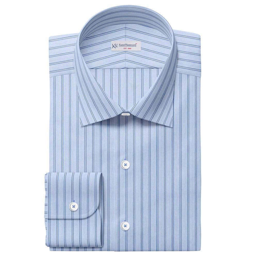 Home Readymade Shirts Formal Sky Blue With Navy Strips Pima Cotton Shirt Fabrics 730-257